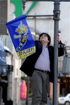 山形商工会議所青年部にて、今シーズンも山形市中心商店街のご協力のもと、各商店街の街灯へ