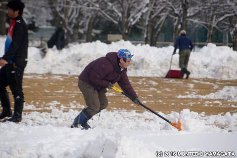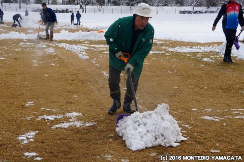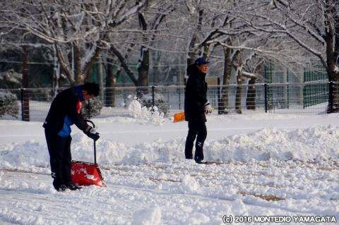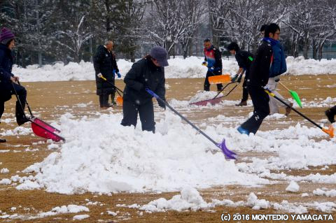この日の朝7時過ぎに約10センチの積雪、雪かきにはサポーターの方含め約40人で行いました。