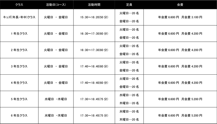 - 天童スクールご希望の方は、年中児〜4年生は火曜日か金曜日、5・6年生は水曜日か木曜日をお選びください 。