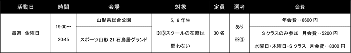 ※(4)Sクラス村山U-12の選考会は、4月8日(金)に実施予定です。