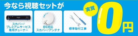 スカパー!ご加入者も対象で、スカパー!プレミアムサービスをご視聴するために必要な3点セットを実質0円でご提供しています。