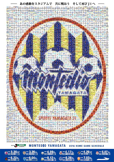 2016明治安田生命J2リーグ第4節セレッソ大阪戦のホームゲーム開幕にあたり、天童市立第四中学校の生徒有志のみなさんとモンテディオ山形が制作していました「笑顔のモザイクアートポスター」が完成いたしました。ポスターの完成に合わせて、天童駅周辺、天童市立第四中学校学区にてポスターの掲出活動を次の通り実施いたしますのでお知らせします。