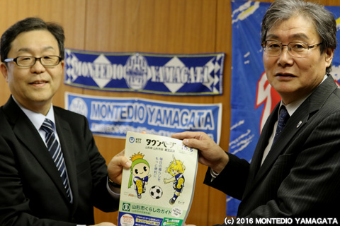 本日、2016年4月6日(水) NTTタウンページ株式会社様より東北ではプロスポーツ初のモンテディオ山形の特集ページが入った2016年度版のNTTタウンページを贈呈頂きました。贈呈者は、東北営業本部長 桜井健一様です。