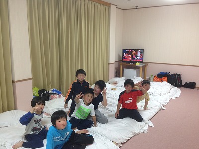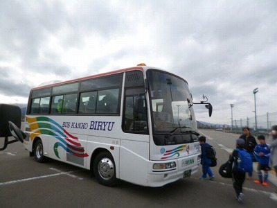 当日は約3時間のバス移動。お父さんお母さんの下を離れて初めて遠征に行く子も多く、少しみんな緊張気味かな??
