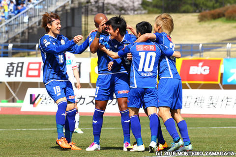 今季モンテディオ山形の選手がNDスタで決めた初ゴールとなります。