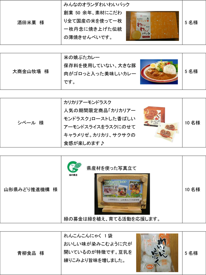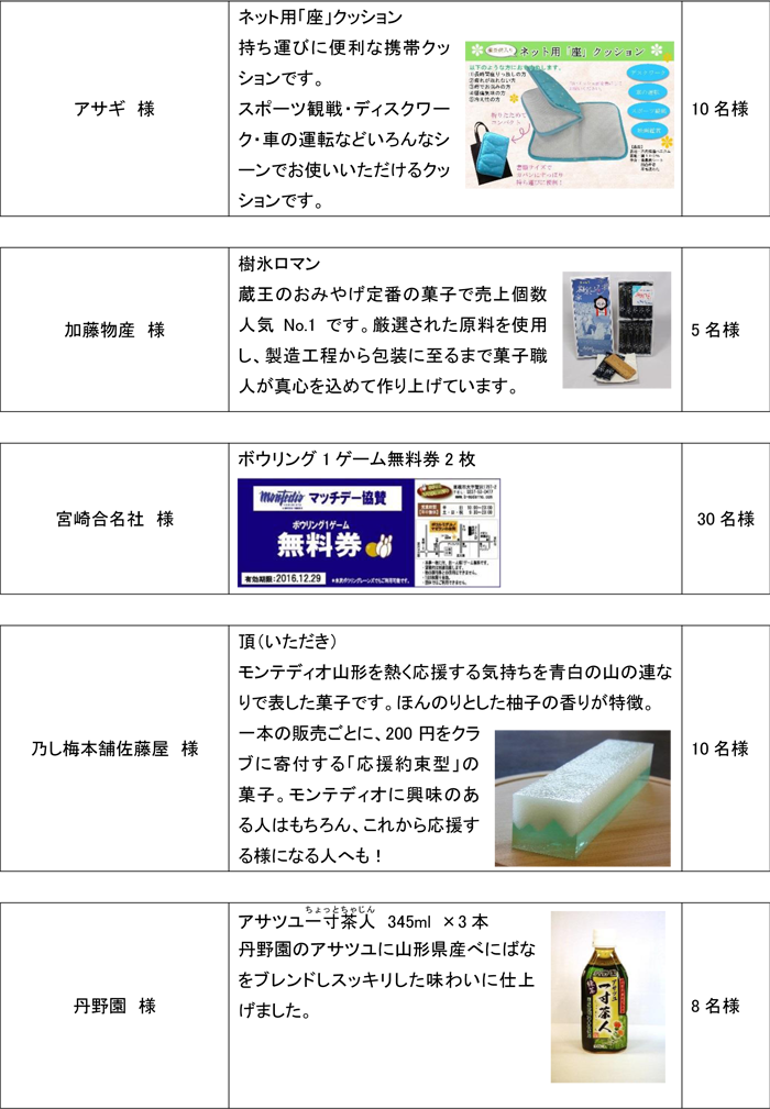 モンテディオ山形の勝利に貢献した選手が表彰されます。また、ご来場いただいたお客様も、「おいしい山形サポーター賞」にご応募いただくと抽選で以下の豪華賞品をお届け!