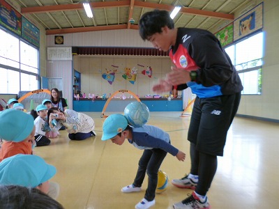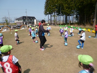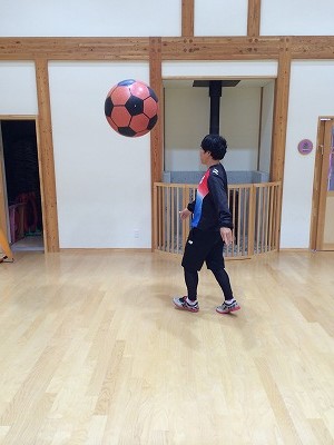 練習が始まる前に大きいボールを見つけました。ちょっとだけリフティング。