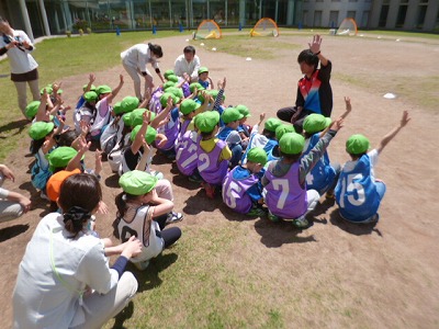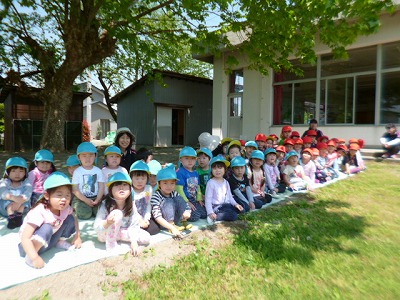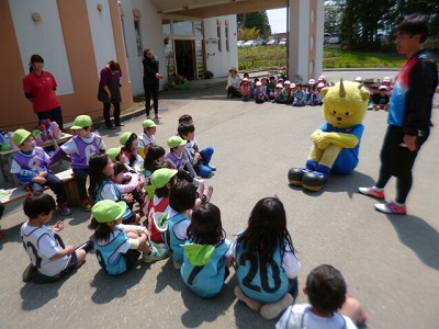 5/10(火)民田保育園、湯田川保育園、小堅保育園の3園合同でふれあいフィールドを行いました。