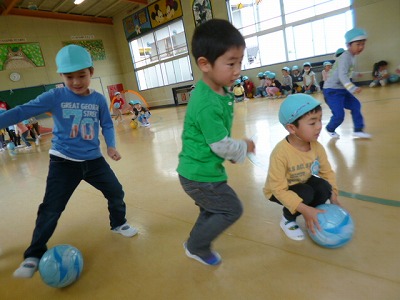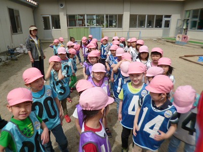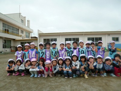 年中さんは中で。年長さんは外で行いました。年中さんは来年晴れるといいね~。