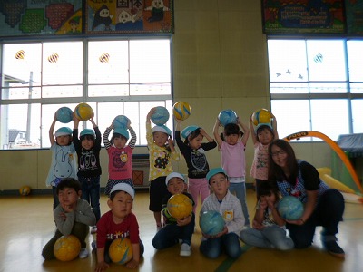 こちらはボールを使って頑張ります。頭までうまくいけるかな?