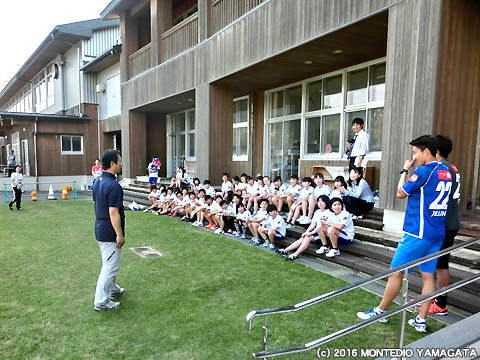 海風が最高に心地が良く、湯野浜海水浴場の近くにある校舎にNo.22DFイ ジェスン選手No.28GK摂津 颯登選手が伺いました。