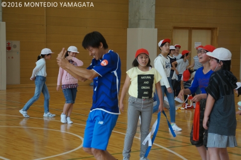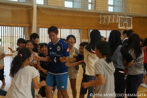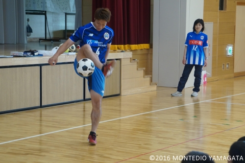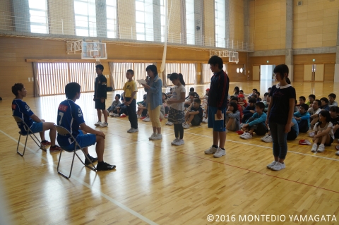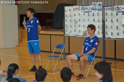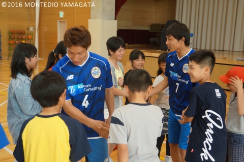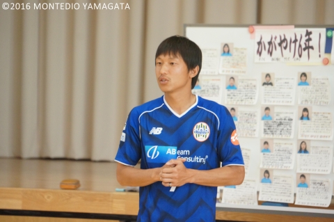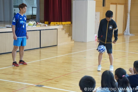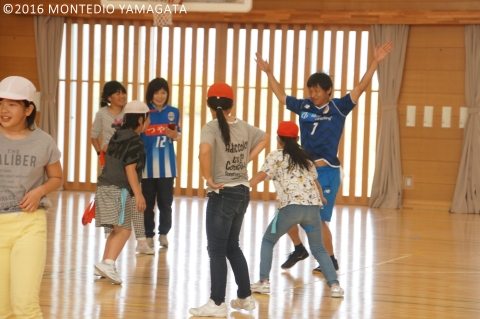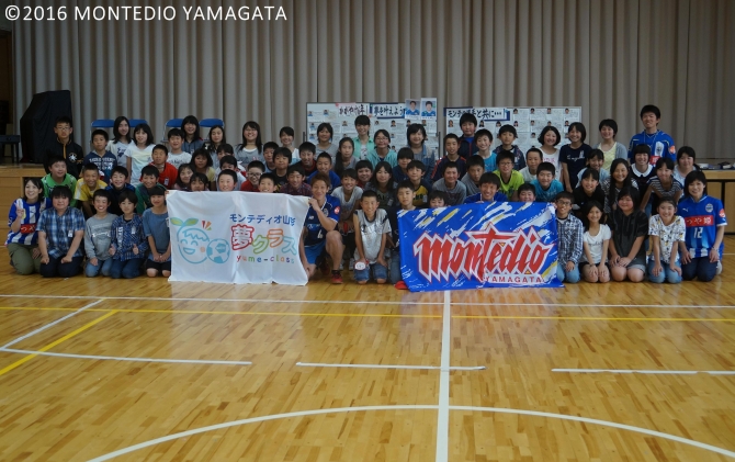 2016年5月19日(木)この日の夢クラス、唯一の内陸地方での実施となった南陽市立沖郷小学校では、6年生69人の子供たち、モンテディオ山形から松岡亮輔選手、宇佐美宏和選手が参加しました。