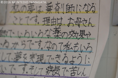 会場となった体育館にはこの日参加した児童69人のそれぞれの夢が掲示されていました。