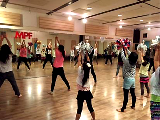 MPFのチアクラスはいつも元気いっぱい! 踊っている人も見ている人も笑顔で元気になれる力をモンテディオ山形のサポーターに送ります!