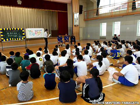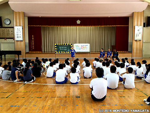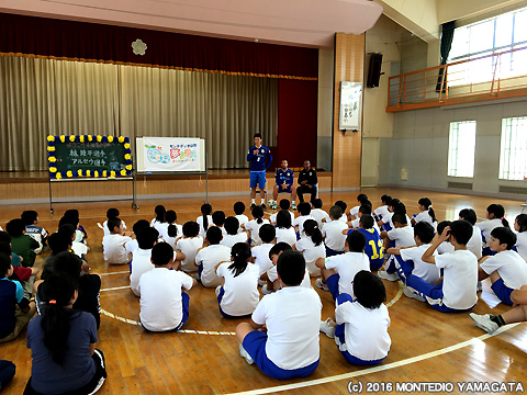 ホームタウンである山形の子供たちと「夢」について一緒に考え、夢を叶えるために「努力」することの大切さを育んでいく夢クラス。2016シーズンの夢クラスは6月1日に第2回目の訪問が山形県内の4つの小学校で行われました。