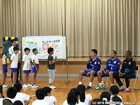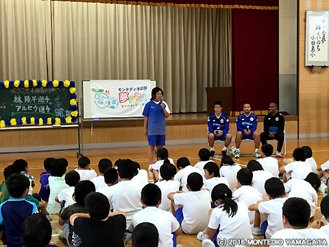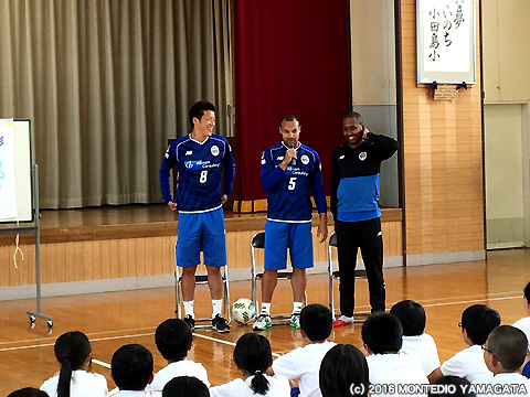 小田島小学校4・5・6年生のみなさん、本日は楽しい時間を頂き有難うございます。6月12日vsカマタマーレ讃岐戦は東根市応援デーです。是非、スタジアムに来て両選手、そしてモンテディオ山形への応援を宜しくお願いします!