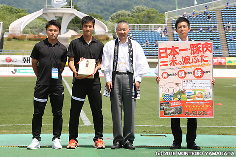 また金山町からは特産の「米の娘ぶた」をチームに贈呈頂きました。いつも熱いご支援を頂き、誠に有難うございます。改めて御礼申し上げます。