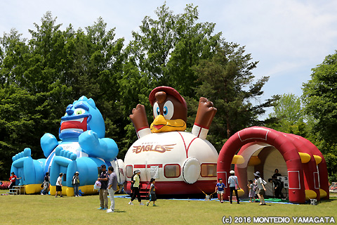 もんてらんどではプロ野球・楽天イーグルスとのコラボレーション企画を実施。モンテスの隣に、楽天Koboスタジアム宮城でお馴染みのクラッチバウンサー、プレイドームが登場。サッカーだけじゃなくて野球も楽しんじゃいます!