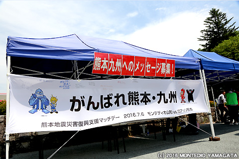 平成28年熊本地震への復興支援活動はこの試合でも継続します。今回から7/6にNDスタで行われるロアッソ熊本との代替試合前のホーム4試合を対象に「復興支援マッチデー横断幕」 に応援メッセージを募ります。
