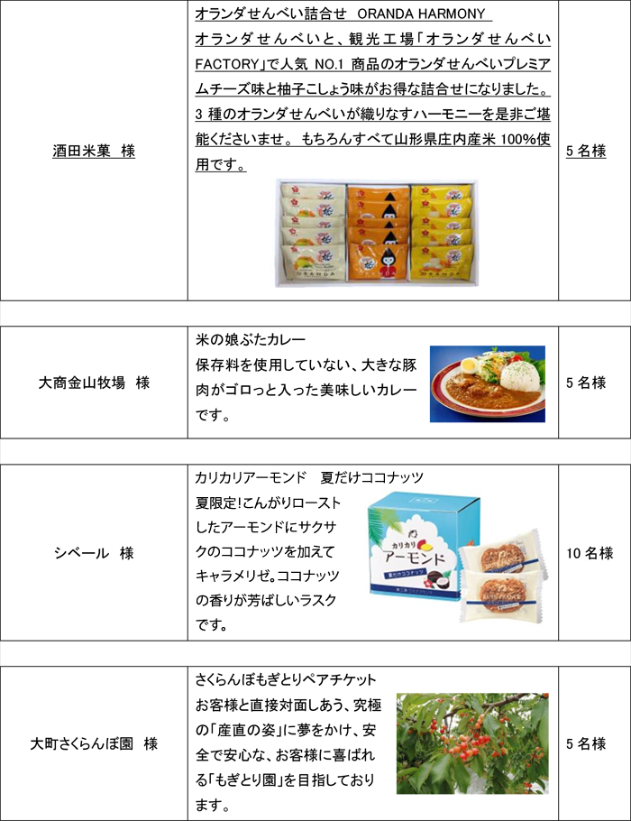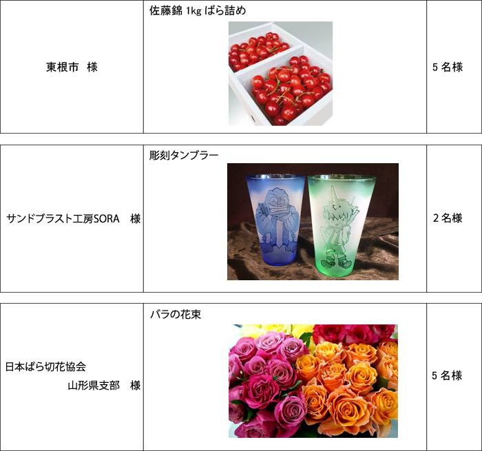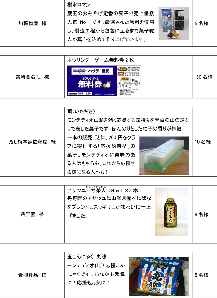 モンテディオ山形の勝利に貢献した選手が表彰されます。また、ご来場いただいたお客様も、「おいしい山形サポーター賞」にご応募いただくと抽選で以下の豪華賞品をお届け!