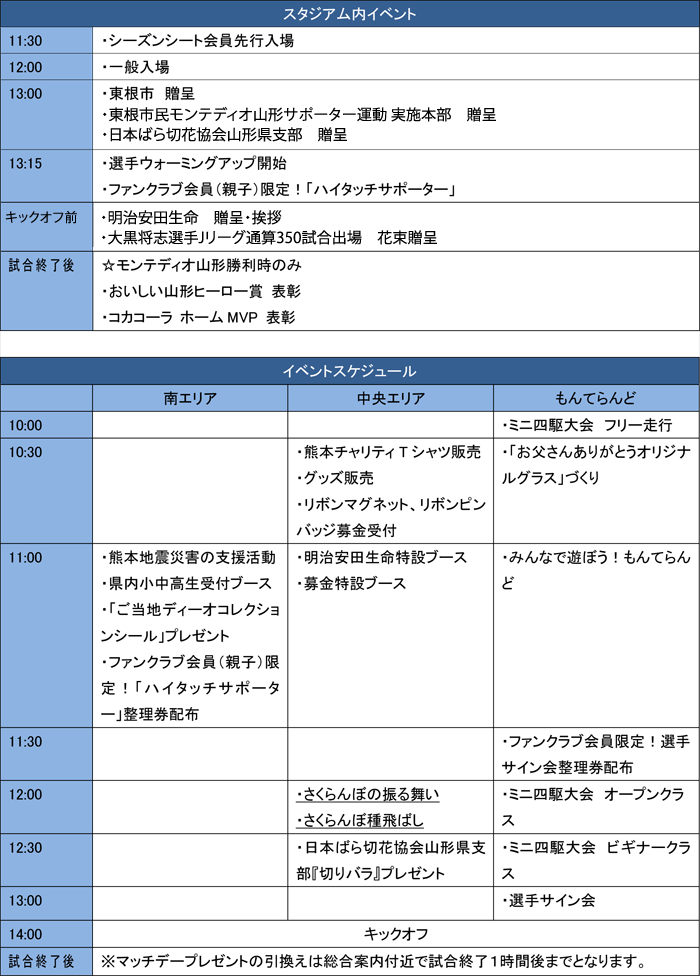 2016明治安田生命J2リーグ第18節 モンテディオ山形VS. カマタマーレ讃岐の開催概要を、次の通りお知らせいたします。下線部が追加・変更部分となります。