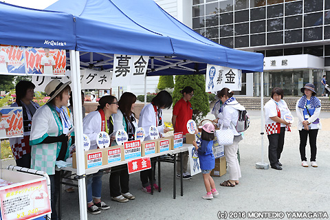また土田正剛東根市長にもお越し頂き、応援募金や特産のさくらんぼの贈呈、そして激励も頂戴しました。
