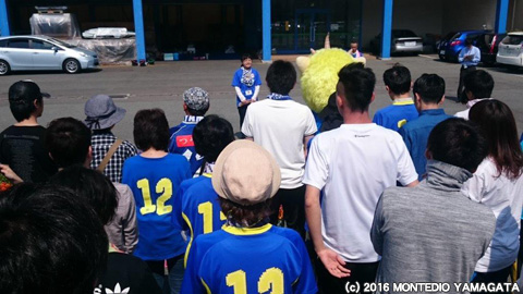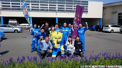 2016年6月12日(日)この日行われたホームゲーム讃岐戦前の朝9時より、ボランティア団体「きらりロードの会」様によって行われた山形市立谷川工業団地内の通称「モンテロード」の花の植栽作業。恒例になったこの作業に弊社 社長 森谷 俊雄とマスコットディーオが参加してきました。