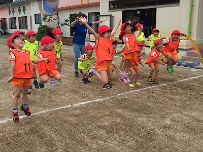 まずはウォーミングアップで思いっきりジャンプ!元気が伝わってきます!