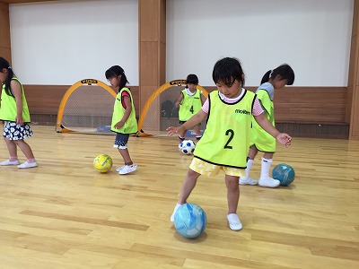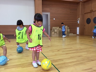 ドリブルは丁寧に。女の子も一生懸命頑張ります。