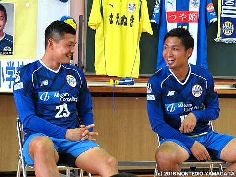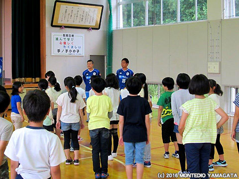 6月23日(木)3回目の実施となった2016モンテディオ山形 夢クラス、飯豊町立手ノ子小学校にはNo.15栗山直樹選手、No.23 瀬川和樹選手が参加しました。