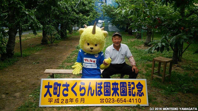 6月25日(土)翌日のホームゲーム水戸戦を前にディーオが天童市の大町さくらんぼ園へ試合のPRのために向かいました。