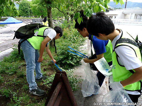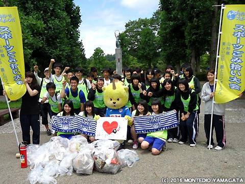 2016年6月26日(日)、2016明治安田生命J2リーグ第20節 水戸ホーリーホック戦当日に山形県総合運動公園で「美しい山形・最上川フォーラム」様主催による「モンテディオ山形杯2016 がんばれ!!熊本応援企画 スポGOMI 6月大会」が行われました。