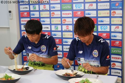 テレビユー山形の情報番組「どよまん」の番組企画「なべっちスタジアム」でモンテディオ山形の選手たちが考案した「冷たいパスタ」を「カフェレストランJuRI」様の協力により、明日2016年7月3日のレノファ山口FC戦のスタジアムグルメとして限定販売いたします。