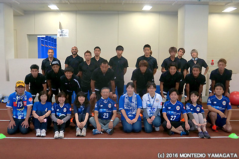 試合はこのまま2-0でハーフタイムへ。全国大会の日本クラブユース選手権に出場を決めたモンテディオ山形ユース(U-18)の壮行会が行われます。次代のモンテディオを支える選手たちにスタンドからも大きな声援が掛かります。
