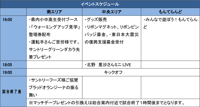 サントリーフーズ様のご協賛で、7月3日・6日・20日開催のホームゲーム会場で、ブラッドオランジーナを試合の来場者様へ試合終了後先着約5,000本、3試合合計約15,000本をプレゼントします。この試合が最終日となりますので、是非お立ち寄りください。