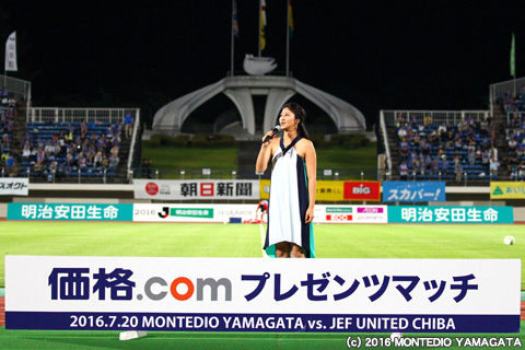 この試合もロアッソ熊本に続き「価格.comプレゼンツマッチ」として開催されます。そして、ミニLIVEが前回のロアッソ熊本戦に続き行われます。今日は女性シンガーソングライター 北野 里沙さんの美声が観客を魅了します。