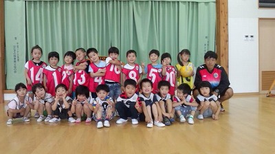 6/29(水)天童幼稚園のみんなとサッカーをしました。