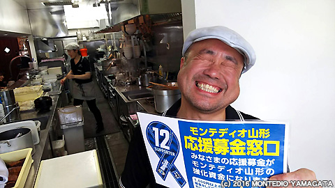 「庄内エリアの皆様と共にモンテディオ山形を応援しています。モンテディオ山形の益々の活躍を期待します。鶴岡にいらしたら晴天の風にラーメンを食べに来てね!」