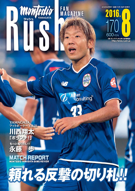 モンテディオ山形唯一の公認情報誌「モンテディオ山形ファンマガジンRush」8月号は8月10日発売です。
