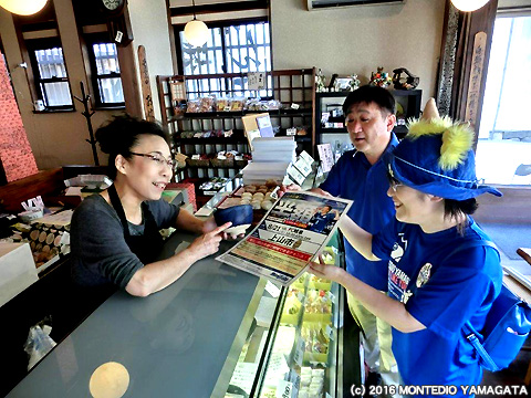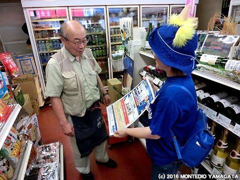 上山駅周辺や町内など一軒一軒回りながら、上山市応援デーの告知ポップの掲出をお願いし、PR活動を実施いたしました。