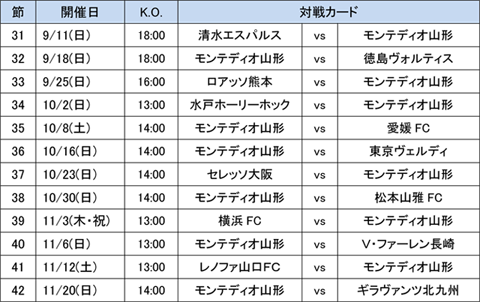 2016明治安田生命J2リーグのモンテディオ山形の試合日程(後期)とチケット販売日程を下記の通りお知らせいたします。