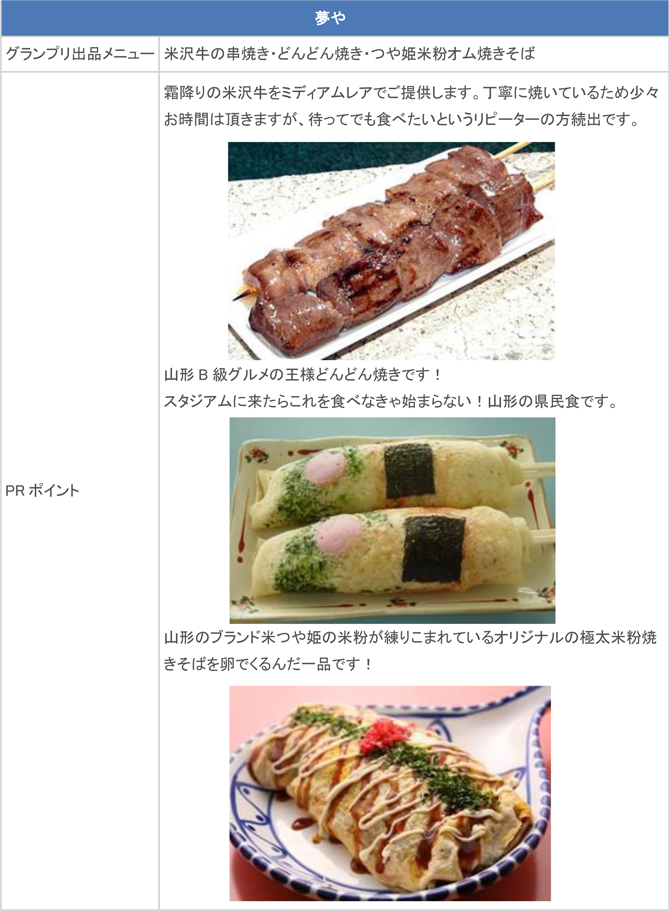 2016年8月21日(日)明治安田生命J2リーグ第30節 モンテディオ山形vs.FC岐阜におきまして、中央エリア飲食ブースのグランプリを決定する、スタジアムグルメグランプリを下記の通り開催いたしますのでお知らせします。
