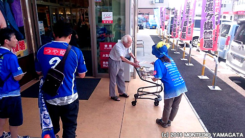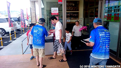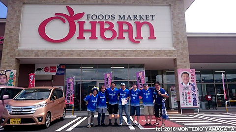 お盆の8月14日(日)上山モンテディオサポーターズクラブのみなさんのご協力の下、おーばん上山店様で2回目の上山市応援デーPR活動を実施いたしました。