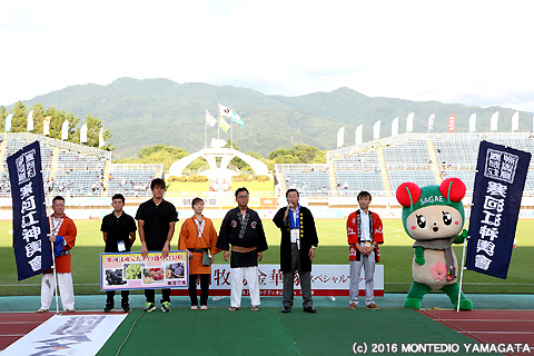 この試合は山形市・上山市・寒河江市・河北町の市町村応援デーとして開催されました。たくさんの方に実際にNDスタにお越し頂きご観戦を頂きました。楽しいイベントブースの開設や