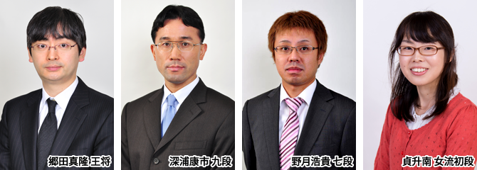 郷田真隆 王将、深浦康市 九段、野月浩貴 七段、貞升南 女流初段