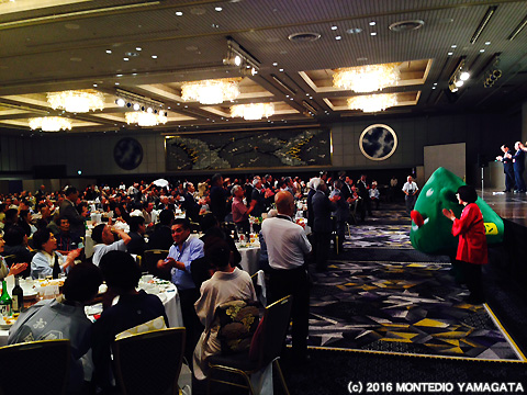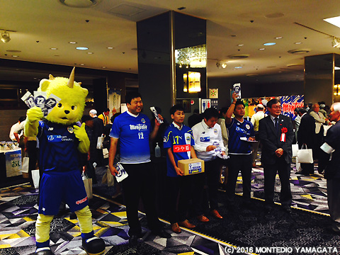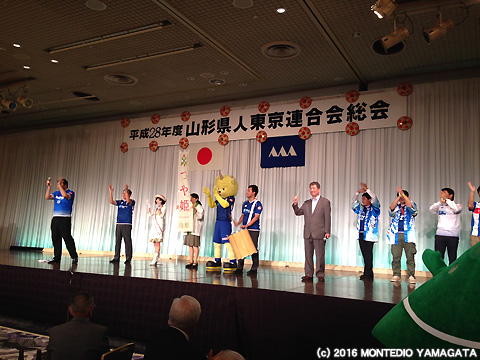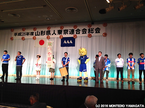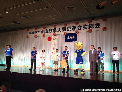 2016年9月4日(日)東京都港区赤坂のホテルニューオータニで開催された「平成28年度山形県人東京連合会総会・県民まつり」に今年もモンテディオ山形が参加いたしました。毎年、関東在住の山形県にゆかりのある方約1,000名が参加する国内最大の山形県人会のイベントで、我々も2009年以来、関東在住サポーターの有志の方々と一緒にリボンマグネット募金活動、グッズ販売等で参加させて頂いており、8年目を迎えます。
