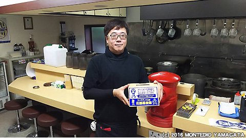リボンマグネット募金の贈呈(十字屋山形店様、麺屋一期一会様)
