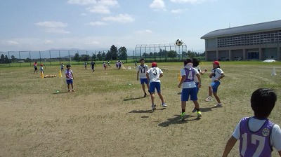 1年生から6年生まで全校生徒での実施でした。中には嫌々?言いながらも男の子も女の子もみんな頑張ってサッカーをしてくれました。