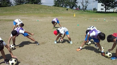 こちらはボール回し。サッカーがやったことがない子も簡単な動きから入ってボールに慣れていきます。初めての子も大丈夫!
