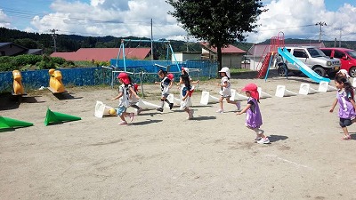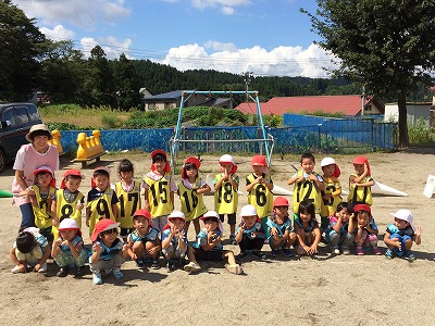 9/13(火)肘折保育所、沼の台保育所、合同でふれあいフィールドを行いました。